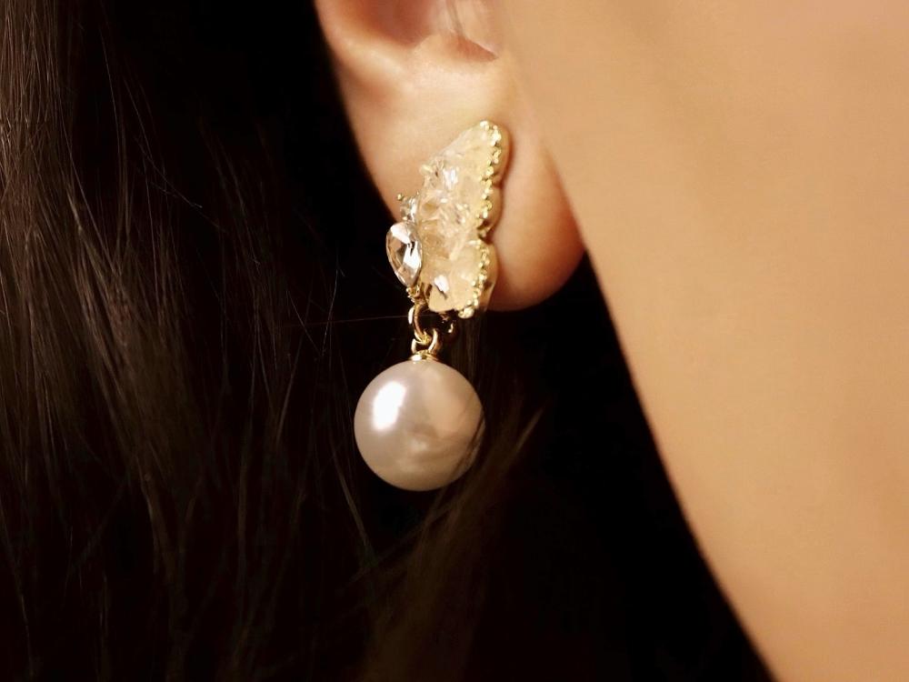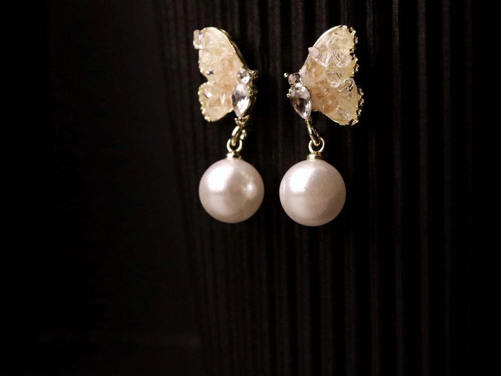اقراط نص فراشة ذهبي مزين بالؤلؤ