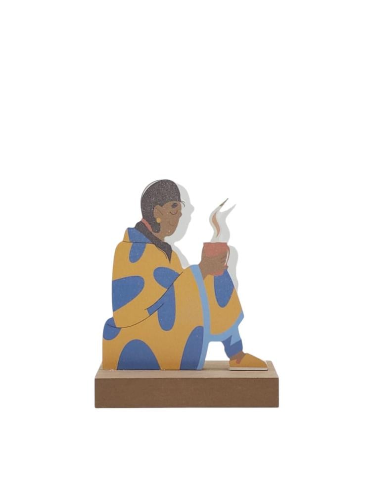 مجسّم خشبي أنيق يعكس دفء اللحظة وتأمّل الاسترخاء مع كوب القهوة ☕🧘🏽‍♀.