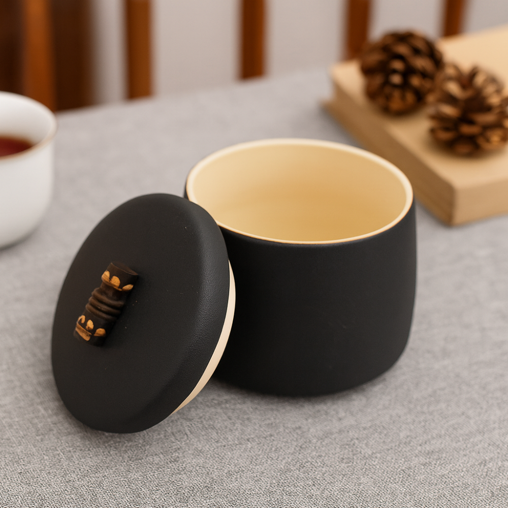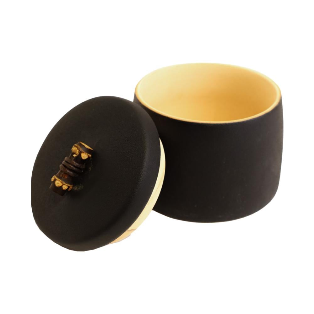 قطعة أنيقة من السيراميك بلون أسود مطفي ولمسات داخلية ذهبية ✨