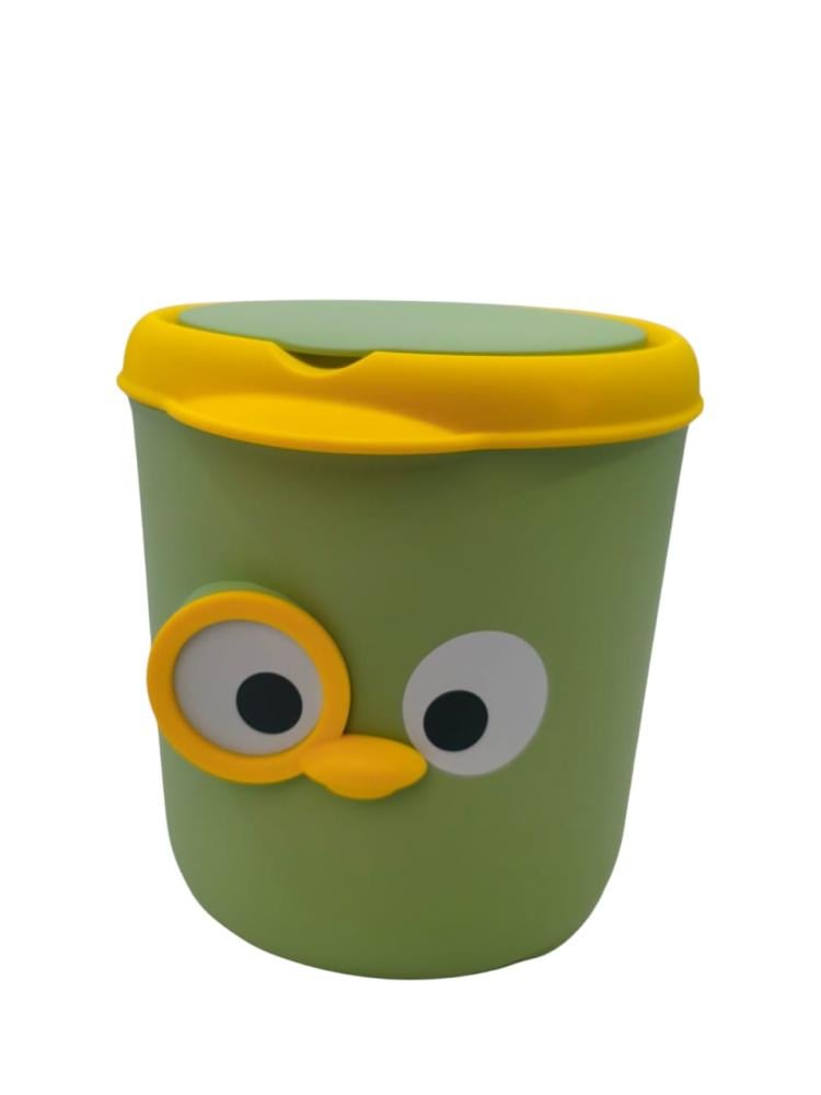 سلة نفايات صغيرة وعملية بوجه كرتوني ظريف باللون الأخضر الفاتح، تضيف لمسة من الحيوية لأي مساحة. مثالية لغرف الأطفال، مكاتب العمل، أو لطاولات المكياج. تصميمها الصغير واللطيف يجعلها عملية وسهلة الاستخدام في المساحات الضيقة.