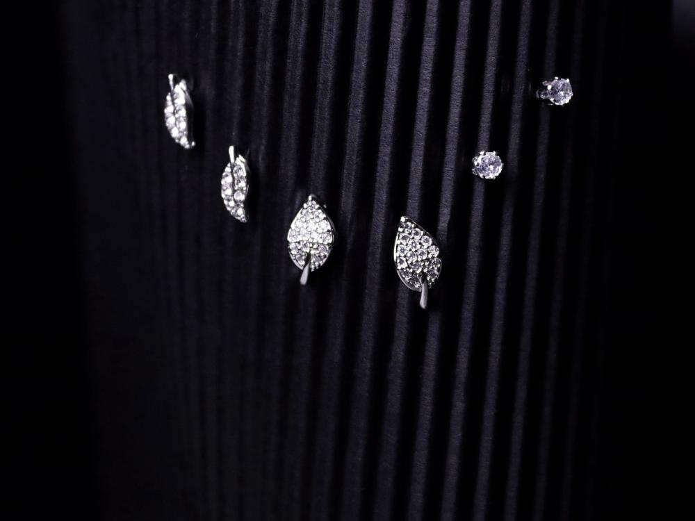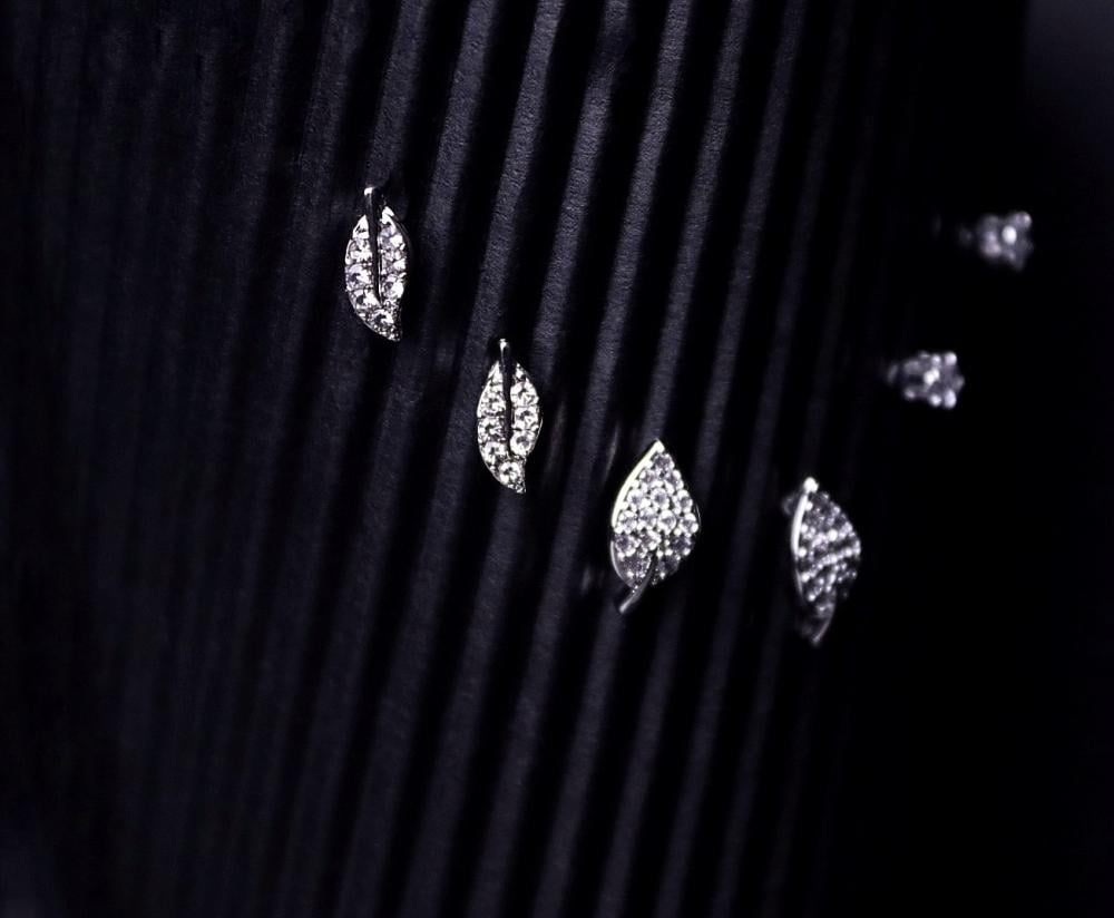 طقم اقراط ورقة شجر فضي